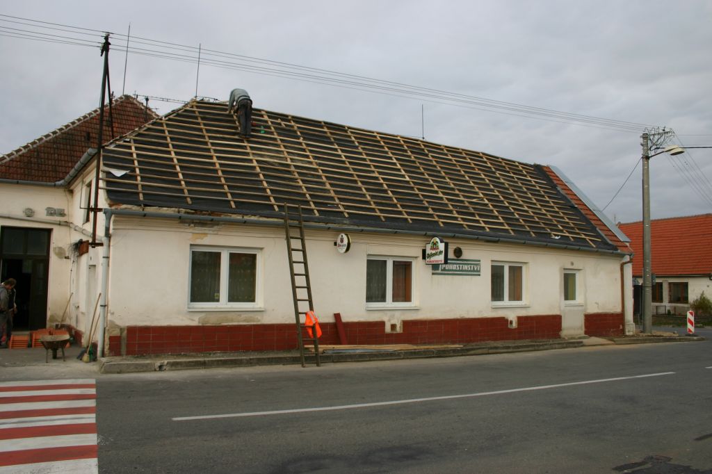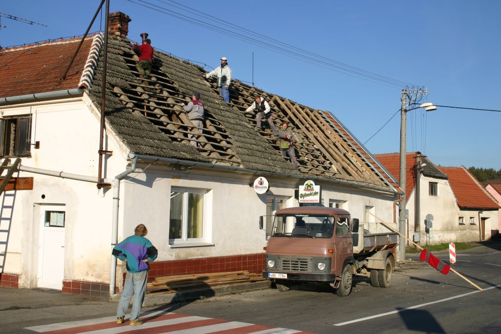 Oprava střechy místního pohostinství